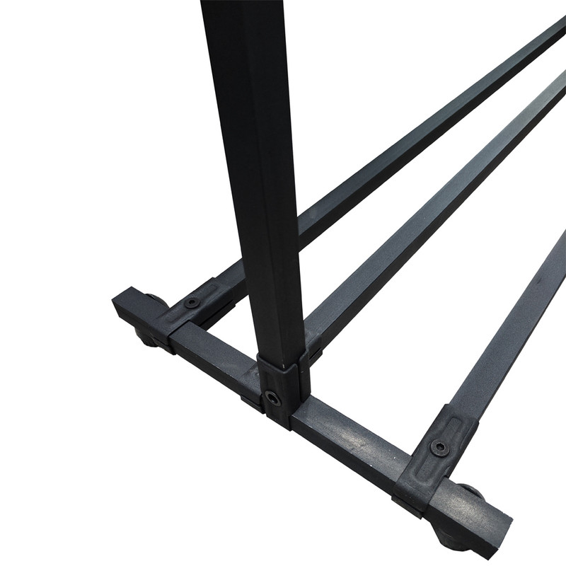در طول 130 و عرض 40 و ارتفاع 157 سانتیمتر.رگال قوطی لباس جا کفشی دار دو طبقه معمولا برای نظم دادن به لباس ها مورد استفاده قرار میگیرد.هر یک از میله ای یک طبقه حساب می شود.رگال ها مدل های متفاوتی دارند. این رگال از پروفیل های قوطی و اتصالات یک طرفه ساخته شده است و اتصالات مقاومی دارد که با آچار آلن بسته می شود که استفاده از اتصال آلنی باعث می شود اتصالات مقاوم و مثل پیچ شل نشوند. این رگال قوطی ساده فلزی بسیار با کیفیت و مقاوم است. فرق رگال های با قیمت پایین تر معمولا از قوطی های مقاوم ساخته نشده و یا ضخامت قوطی کم است همچنین برای آبکاری رگال هم هست که کیفیت پایین دارد ولی ارزان است. اگر به دنبال یک رگال مقاوم و قیمت مناسب هستین این رگال قوطی بهترین نوع رگال نسبت به اجناس دیگر در بازار است. این رگال فلزی ساده با رنگ مشکی الکترواستاتیک و آبکاری استیل تولید شده.این رگال معروف است به رگال قوطی و میتوان انواع دستک یا شاخک های رگال قوطی بر روی میله ها قرار داد و روی آن ها لباس آویزان کرد.این رگال مقاومت بالایی دارد و با ترکیب بست قوطی ، پایه پیچی ، درپوش و فلنچ آن میتوان انواع رگال فروشگاهی و خانگی و حتی طبقه بندی نیز اجرا نمود .با برش قوطی ها به دلخواه میتوانید سایز و ابعاد اختصاصی برای فضای خودتان بسازید.