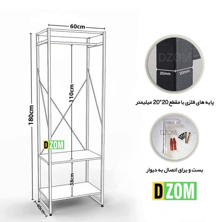 رگال لباس دیزم مدل مونتاژی RGL_60x180_GR طول 60 سانتی متر